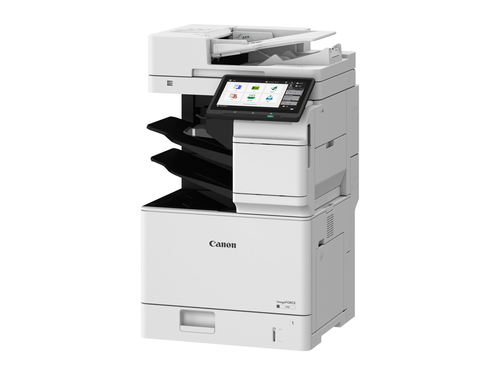 Canons newest A4 black & white device the imageFORCE 520Z hosts an easy to use interface and impressive print + scan speeds with an internal staple finisher providing any workspace the ability to increase their workflow. Improved security to reduce any leaks or threats and increased sustainability with the device now being made of 25% recycled plastic and using cardboard packaging from Canon.