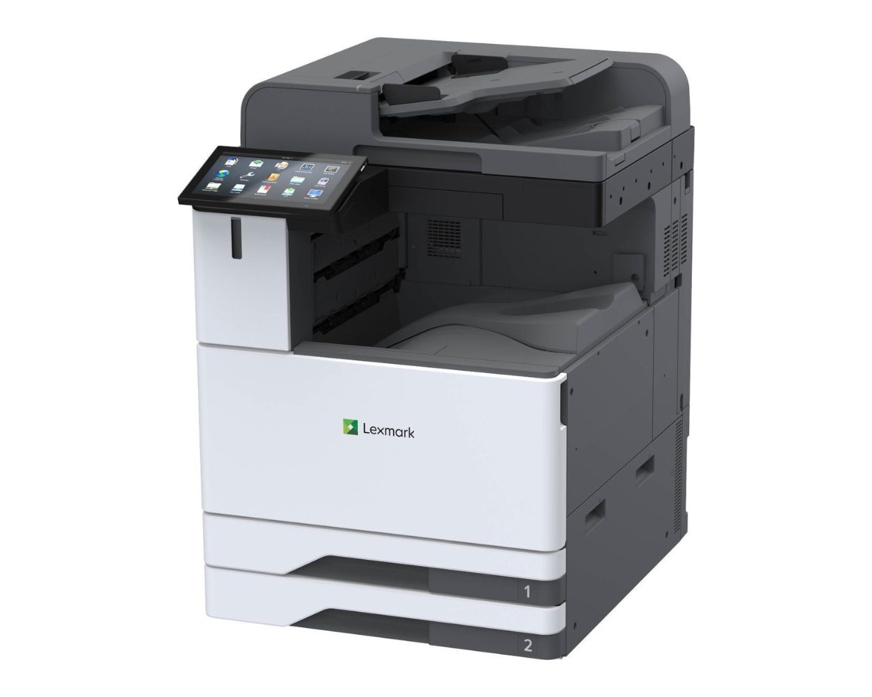 The Lexmark XC9445 large-format colour multifunction is designed for security, versatility and performance for large workgroups at speeds of up to 45 pages per minute. Loaded with standard features, this model includes a 25 cm touchscreen, single-pass two-sided scanning with ultrasonic multifeed detection, Optical Character Recognition (OCR), and analogue faxing.