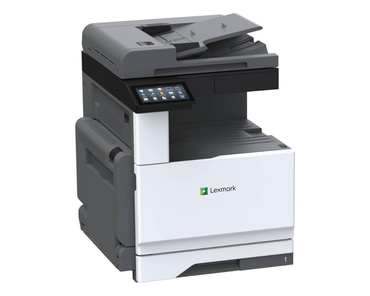 The Lexmark XC9455 large-format colour multifunction is designed for security, versatility and performance for large workgroups at speeds of up to 55 pages per minute. Loaded with standard features, this model includes a 25 cm touchscreen, single-pass two-sided scanning with ultrasonic multifeed detection, Optical Character Recognition (OCR), and analogue faxing.
